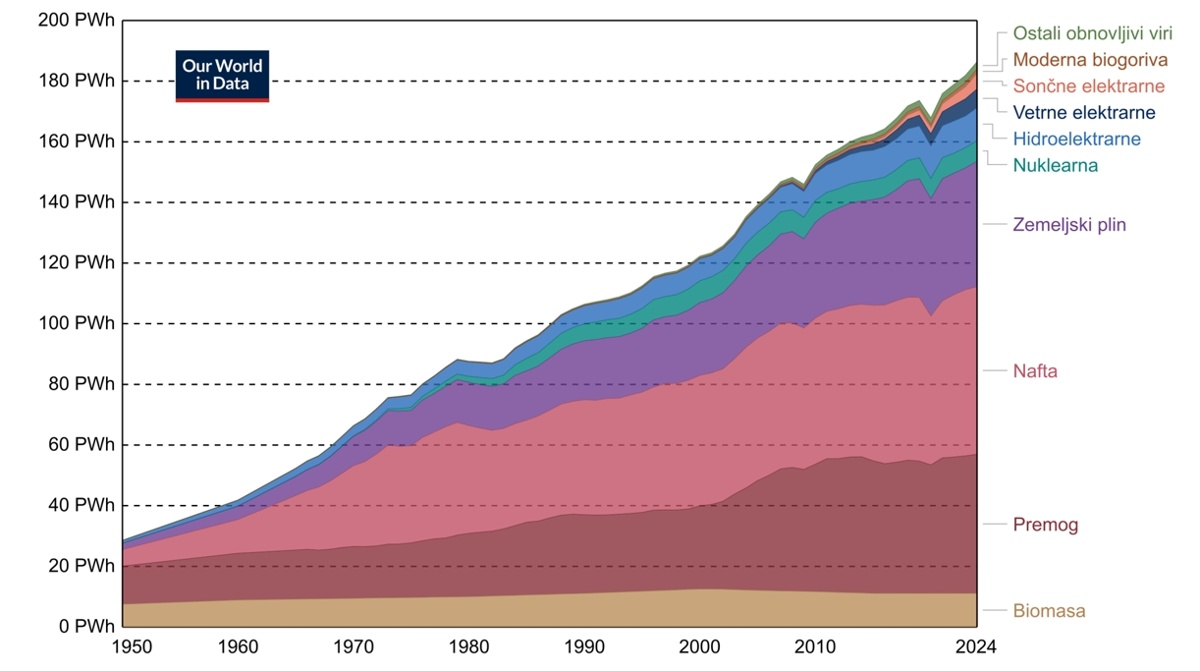 Rast rabe energije na globalnem nivoju se v zadnjem obdobju še pospešuje - od leta 1975 do 2025 smo porabili toliko energije, kot vse prejšnje generacije skupaj!