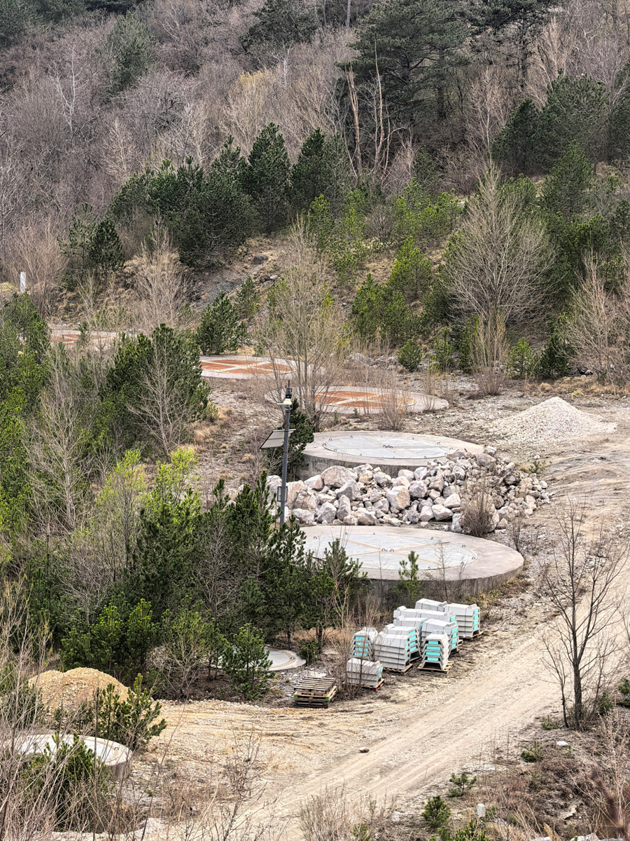 V zgornjem delu plazu se je začela gradnja velikih betonskih vodnjakov, ki so zasidrani globoko v stabilno podlago. Njihova konstrukcija je tehnično zahtevna, saj temelji na pilotih globine 10 do 12 metrov, nad njimi je približno 4 metre debela temeljna plošča in nato aktivni del vodnjaka, globok od 12 do 16 metrov. Premer posameznega vodnjaka znaša med 6 in 8 metri.