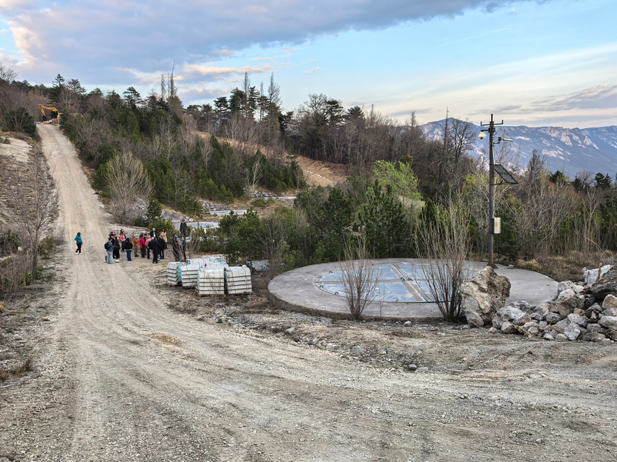 Po zaključku konference Blue Economy Forum 2026 v Ajdovščini smo udeleženci teorijo prenesli tudi v prakso in se po strokovnem predavanju, na katerem je plaz Slano blato, njegove izzive in sanacijo predstavil Ervin Vivoda z Ministrstva za naravne vire in prostor, odpravili na ogled na teren.