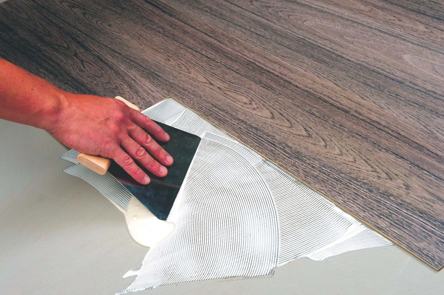 Lepljenje parketa zahteva dobro pripravljen in aklimatiziran parket, kvalitetno lepilo in veščo roko. Fiksiranje tekstilnih in PVC plošč se lahko lotimo na več načinov. Lepljenje PVC in vinilnih oblog v zvitku pa je kompleksnejši projekt zaradi same sestave in navitja le-teh. Lepljenje LVT-ja oz. heterogenega PVC-ja v ploščah je predvsem odvisno od kvalitete materiala samega in dovolj močnega lepila.