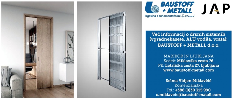 Podjetje Baustoff+Metall, Slovenija skupaj s podjetjem JAP iz Češke sodeluje pri distribuciji in vgradnji ohišja in vodil za drsna vrata. Gre za konstrukcijo, ki omogoča, da drsna vrata elegantno »zdrsnejo v steno«. Ohišje zagotavlja enostavno in nemoteno drsenje vseh vrst vrat in njihovih različic (lesena drsna krila, steklena drsna krila …).