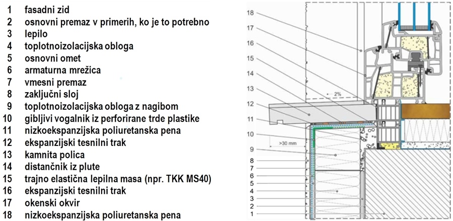 Tehnično najzahtevnejši del vgradnje fasadnega toplotnoizolacijskega sistema je izvedba stika z elementi v fasadni zid vgrajenega stavbnega pohištva.