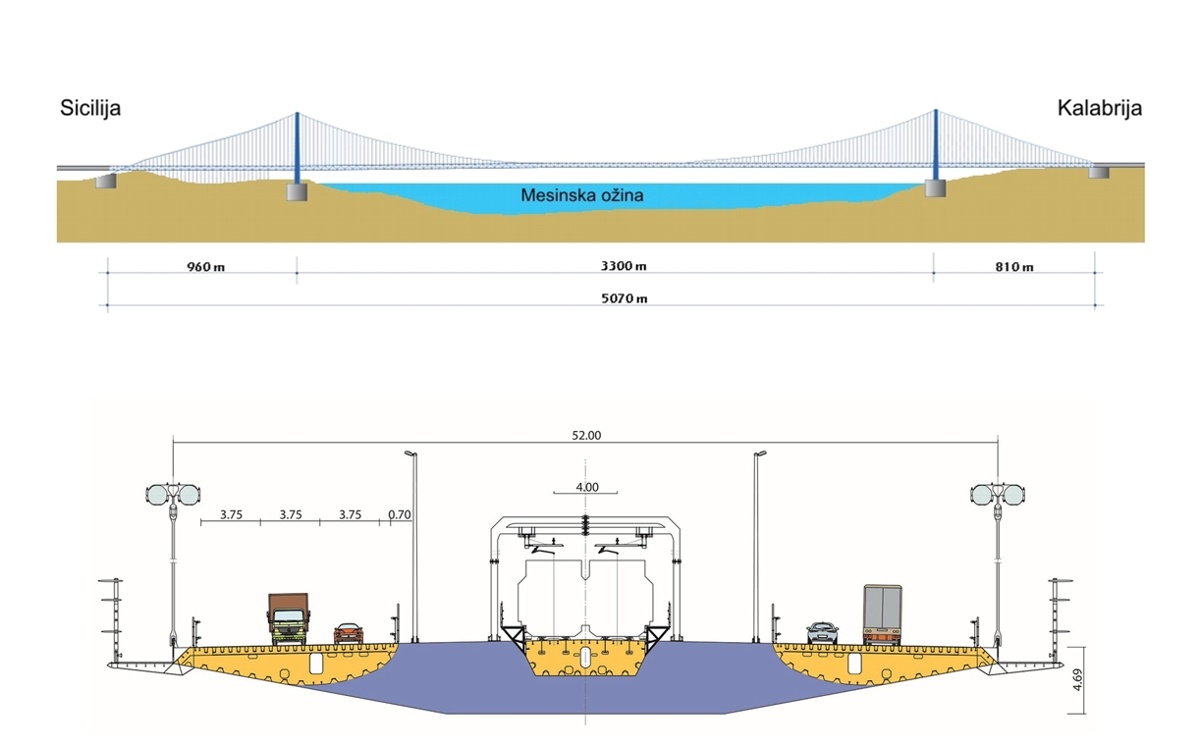 Leta 2032 naj bi 3.666 metrov dolg most povezal kraja Mesina na Siciliji in Villa San Giovanni v Kalabriji.